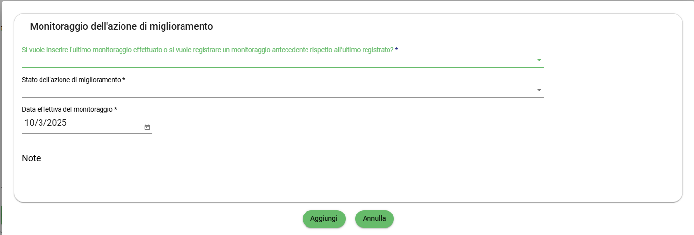 Dentro a ciascuna scheda di azione di miglioramento è possibile inserire i dati relativi ai monitoraggi:
