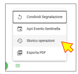 Per eliminare un monitoraggio è necessario accedere allo "Storico operazioni" dal menù in basso a destra: