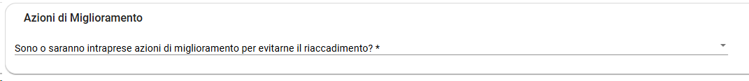 Per le schede del Modulo A (al momento solo per gli incident reporting) è prevista l'implementazione dello step Azioni di miglioramento: