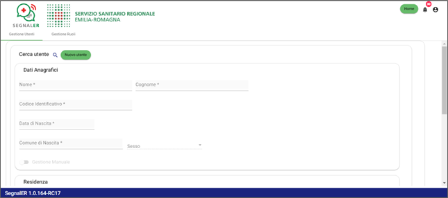 Dopo aver premuto il pulsante Gestione Utenti nella schermata delle funzioni amministrative, l’utente si trova in una schermata che presenta due sezioni: